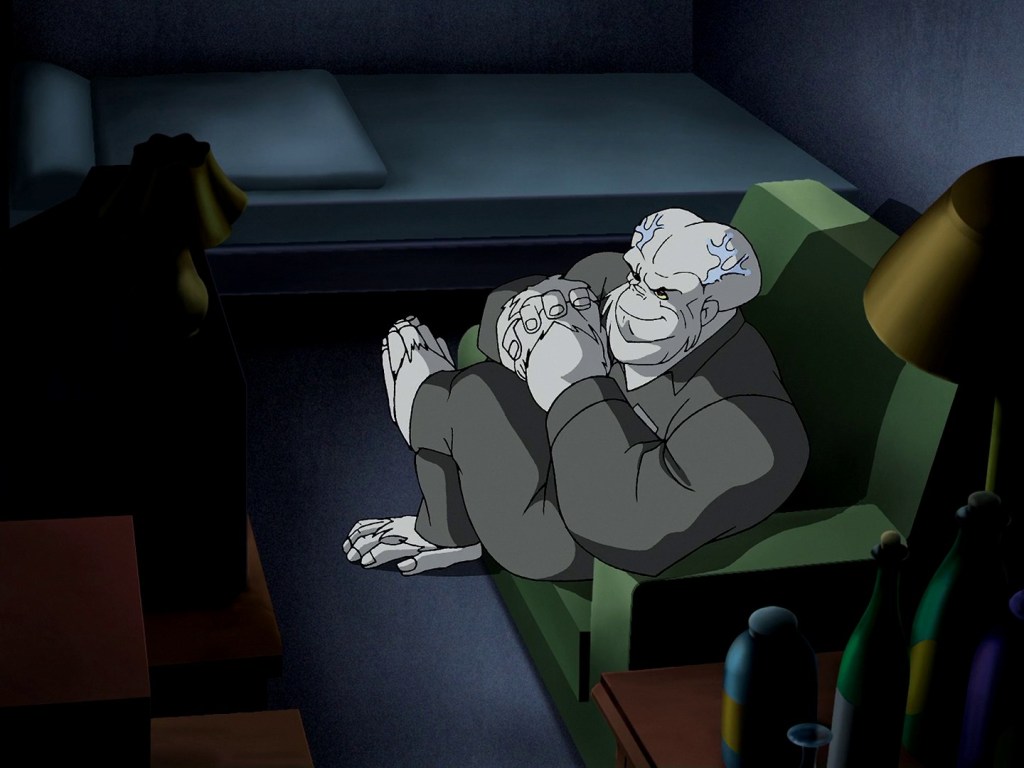 Batman spends most of the episode as a hostage and almost talks the Injustice Gang into defeating each other. Not only does this build upon the theme they established last time – that the League are better organised than the ragtag Gang – but it takes the DCAU’s foundational character and makes a point of reminding you he’s cool as fuck. Conversely, Superman looks utterly impotent while trying to interrogate Copperhead, getting less info out of him from a position of power than Batman did from one of weakness.