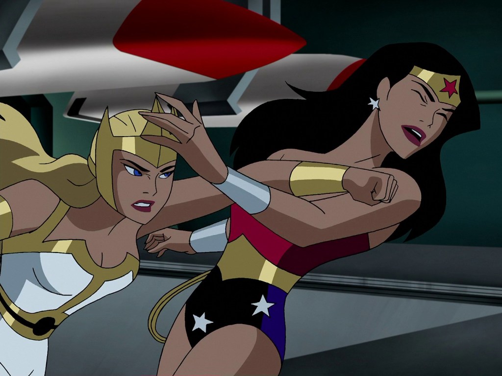 Hawkgirl continues to get away with some slightly edgier jokes, having previously mocked Flash for premature ejaculation, and this time telling Diana she needs to try some dick before she writes men off entirely. As funny of a moment as that is, it does open up some mildly provocative questions about Amazonian attitudes towards men, as while Wonder Woman doesn’t condone mass murder, she does question the necessity of men. Furthermore, Shayera comments that Aresia is simply taking Amazon doctrine to its natural conclusion, which sort of links up with my comments last time about if their strict culture is more to blame for Aresia’s actions than any ‘inherent’ evil. They don’t really dwell on it though. A running theme, unfortunately.