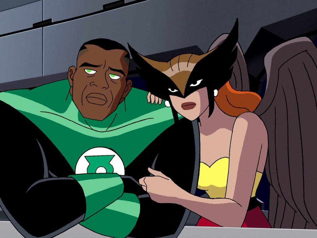 Another piece of evidence for the ‘Green Lantern powers are ineffective against yellow’ in the DCAU, as John’s beams fail to break through a yellow forcefield.