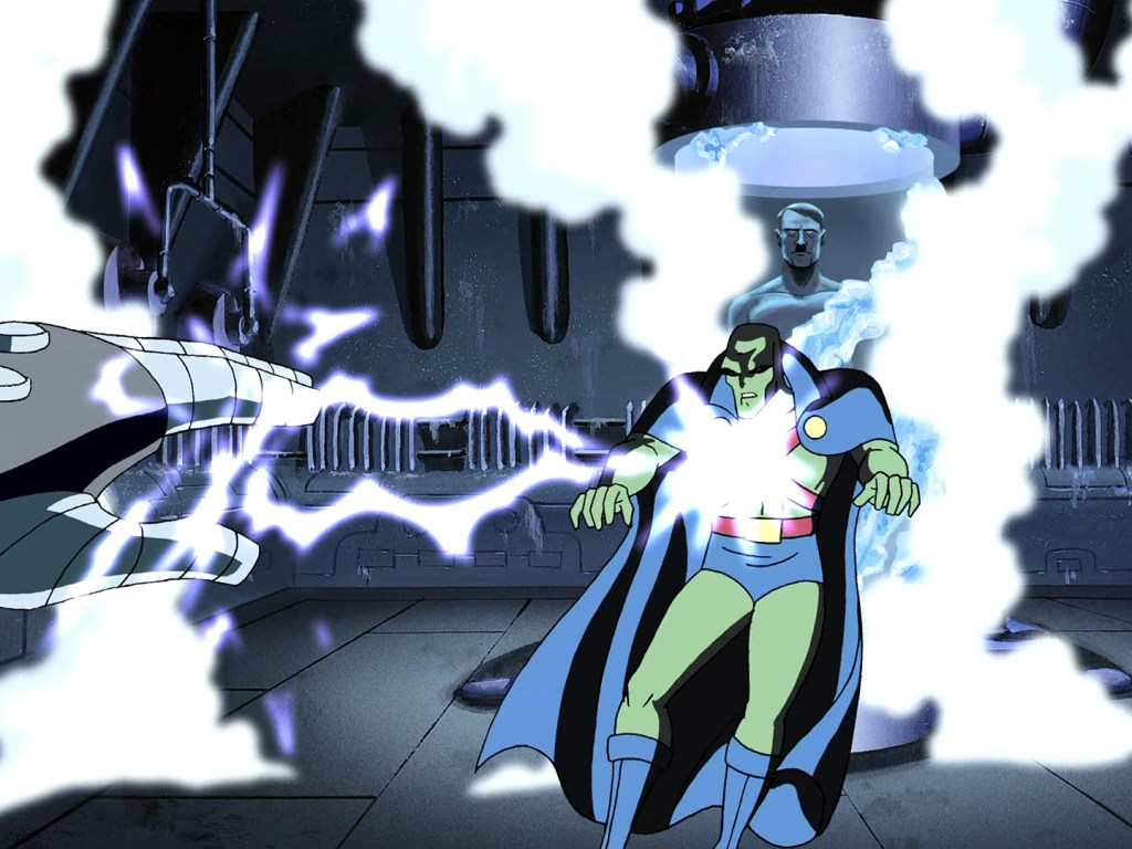 When he does arrive he’s solid if nothing special… yet. Murdering one of your own generals is such a great cheat code for making you hate a villain, while also demonstrating their power. His electro-glove is fun, taking out Martian Manhunter as well.
