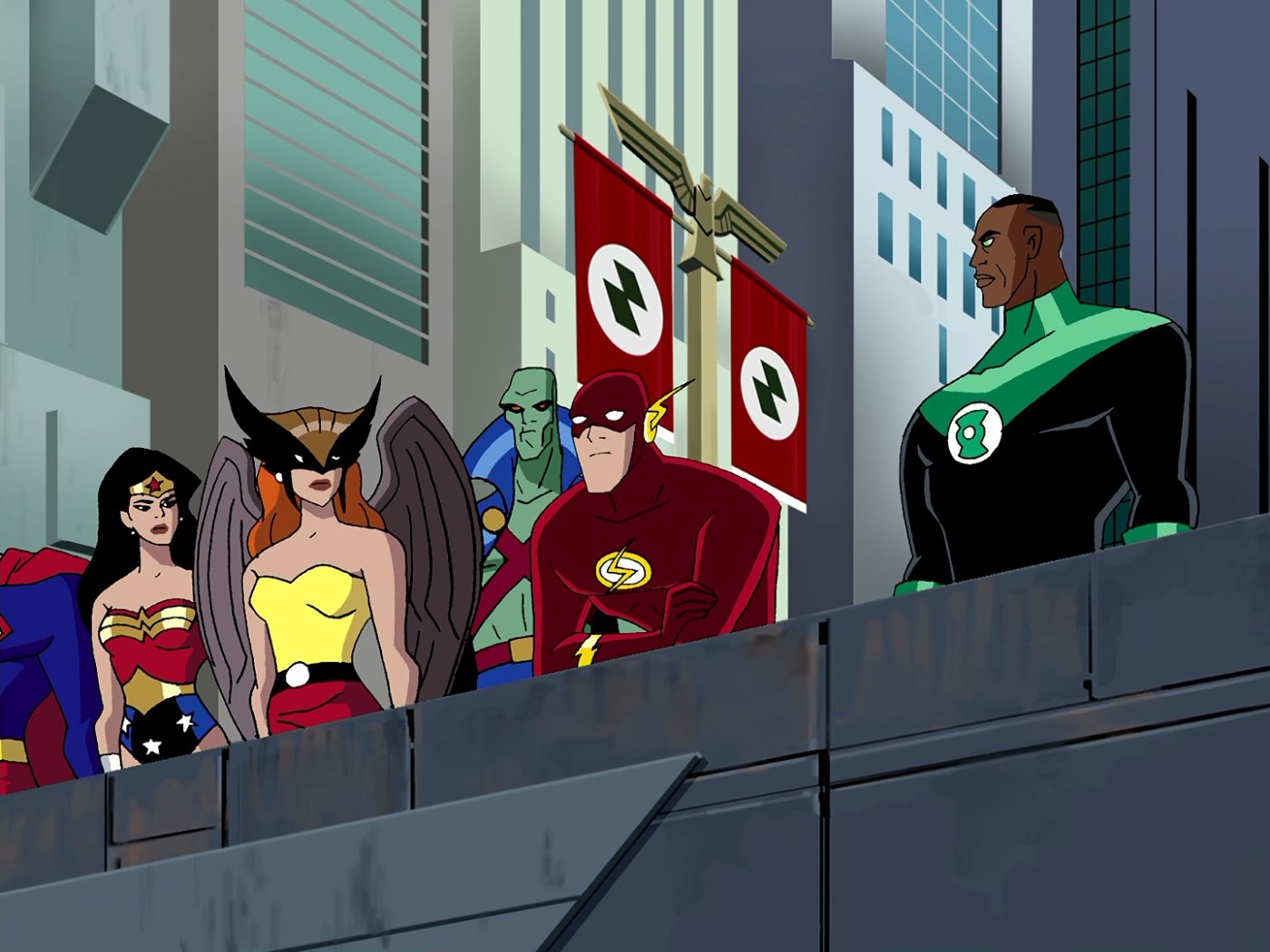 Plot summary: Vandal Savage changes world history so that he led the Nazis to victory in World War II, forcing the Justice League to follow him back in time.