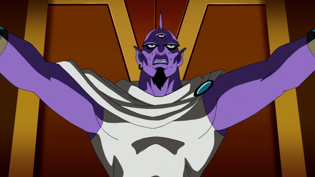 But who are we kidding? Keith David fucking rules in everything he does, and this is no exception. Despero’s initial dialogue is relatively generic – he wants to take over the universe etc. – but David sells it all so well. From there he almost whispers his backstory, before bellowing battle cries, and both work extremely well. You know I love that kind of range. All throughout there’s a quiet confidence that makes the character magnetic. Truly, if you can cast Keith David, you should cast Keith David.