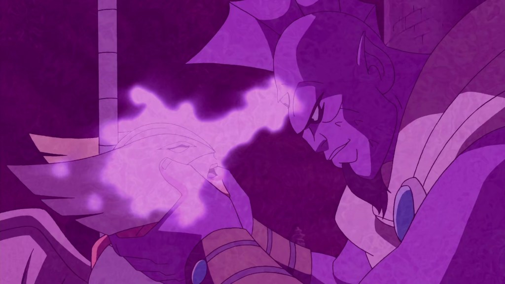 There’s an element of waiting for the other shoe to drop when it comes to the authenticity of Despero’s faith. The DCAU to date trained me to expect him to be revealed as a fraud, pulling the wool over the eyes of his followers and spinning tall tales about how he gained his power, but that’s only partially true, as he appears sincerely devout even when there’s nobody around to trick. He even embraces his ostensible death as the tree roots drag him down into the core of the planet in a christ-like pose. So it seems he did experience a sincere religious connection to the flame, but the evil within him made him interpret it all incorrectly, and when his ‘eyes are opened’ at the end, he goes willingly into the night. Fascinating, IMO.
