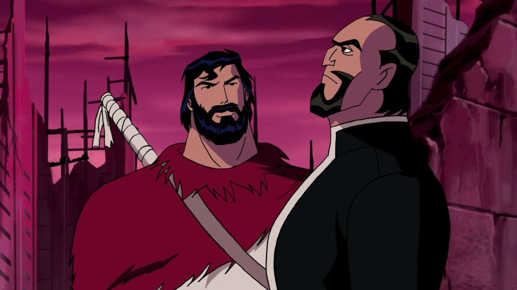 It’s your classic ‘villain lives so long he reflects on his evil ways’ trope, bolstered very nicely by Phil Morris’ voiceover work. The matter-of-fact recounting of how he murdered all of Superman’s friends and then destroyed the world is great stuff, because serene evil is always scarier than ranting and raving. See also his total apathy towards Superman trying to murder him, confident that he’d survive. Speaking of which, his blasé attitude towards causing an extinction event makes you root for Superman to go through with his impulse to take violent revenge… yet that would leave him alone again, this time without the hope that drove him to make the trek in the first place. Nice complicated situation created by the villain, IMO.