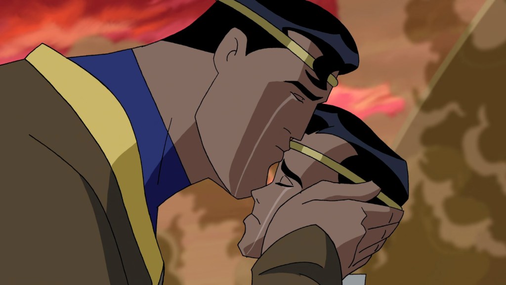 But this is George Newbern‘s finest piece of work in the DCAU to date, as he painfully recounts a lifetime of ‘memories’ of his son that he suspects are not real, all while trying to be kind to the boy. This is such a powerfully poignant moment that works way better than the finale of WandaVision, with Newbern knocking it all of the way out of the park. It’s not as simple as just going quiet and sounding a little sad, this is a genuinely affecting piece of acting. He makes it work even better retroactively with his rampage against Mongul after he’s free of the illusion, carrying the pain of the life he could have had with him.