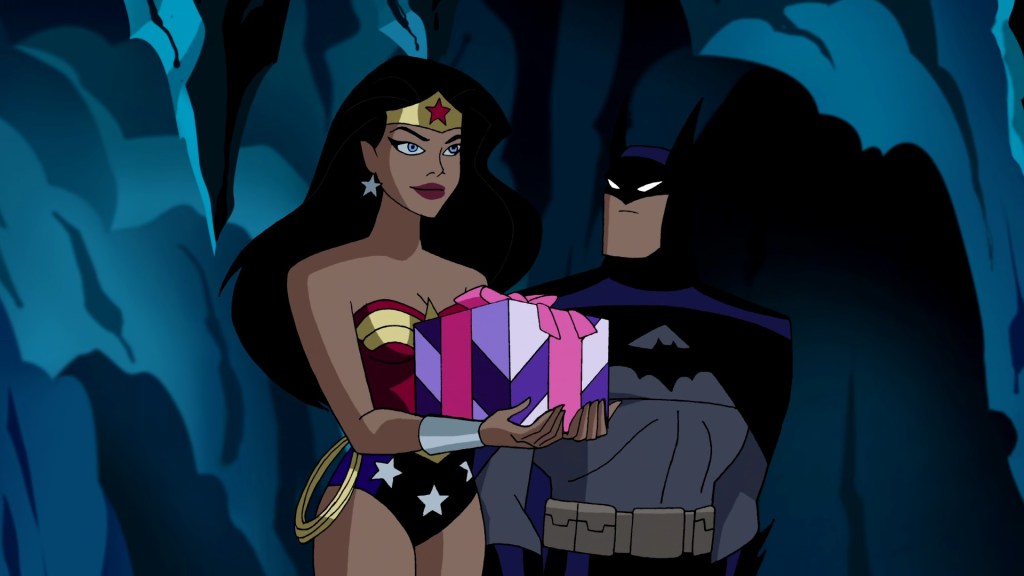 The very first lines of dialogue of this high concept episode being some flirty banter with WonderBat is joyous. Diana playing defence against an opponent she ostensibly stands no chance against so that Bruce can save Clark is touching, and even more so her crawling towards him battered and broken after Superman tags in, more concerned for ‘her man who’s not her man’ than she is for herself. Bruce’s attempt to make Clark snap out of it by claiming Mongul will kill Diana… and then everybody else is an excellent little line of dialogue. Is it a shock tactic? Is this a genuine moment of vulnerability on the part of the stoic Dark Knight admitting he’s afraid for the life of ‘his girlfriend who’s not his girlfriend’? We’ll never know, but both work. His frustrations that none of his tools have any effect on Black Mercy are certainly real.