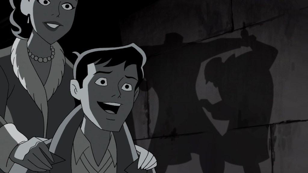 Despite there being over 100 episodes of BTAS (TNBA counts) and multiple movies, this is the first appearance of Joe Chill in the DCAU. This is also the only mention of Zod, who was functionally replaced by Jax-Ur in STAS.
