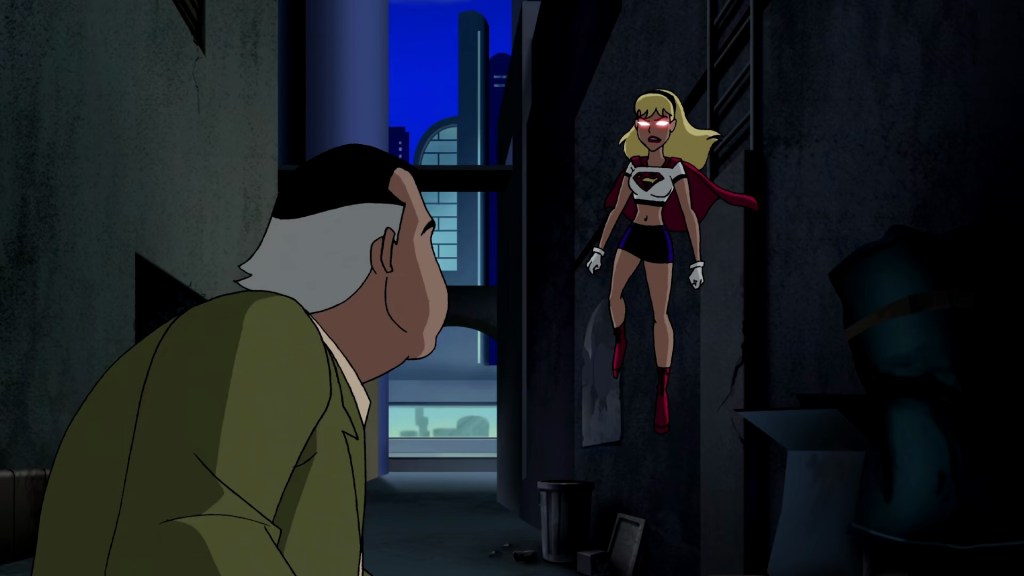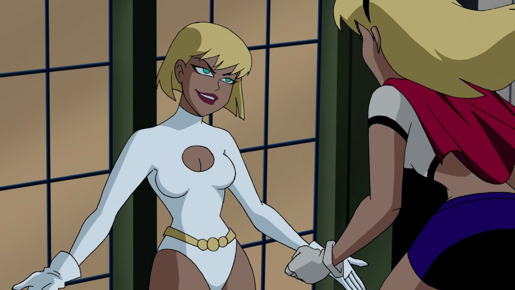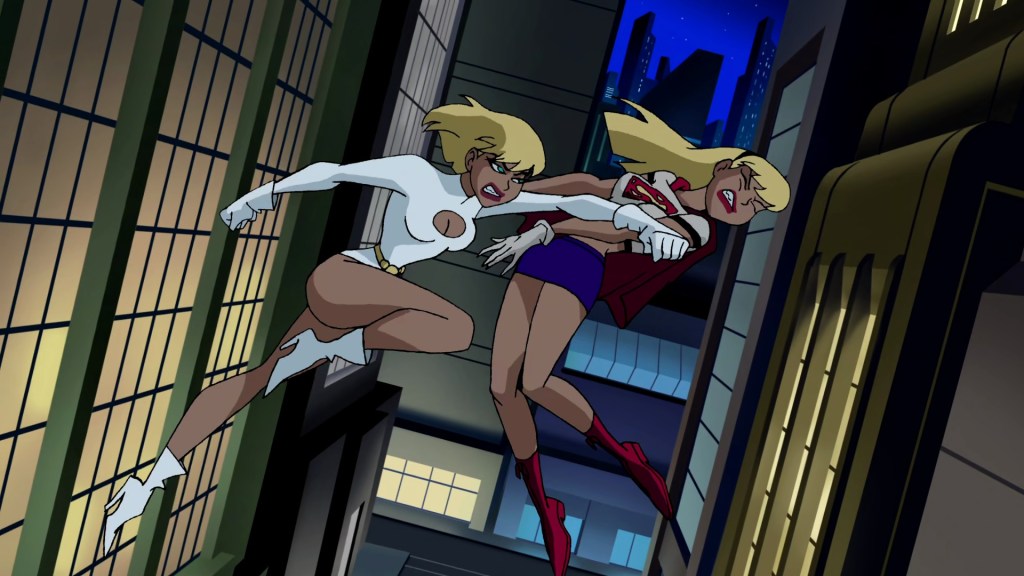 While Galatea is a DCAU original, she is a clear riff on Power Girl, an overly-sexualised alternate universe Supergirl. She’s generally depicted as older and more experienced than ‘our’ Kara, which carries over to this episode.