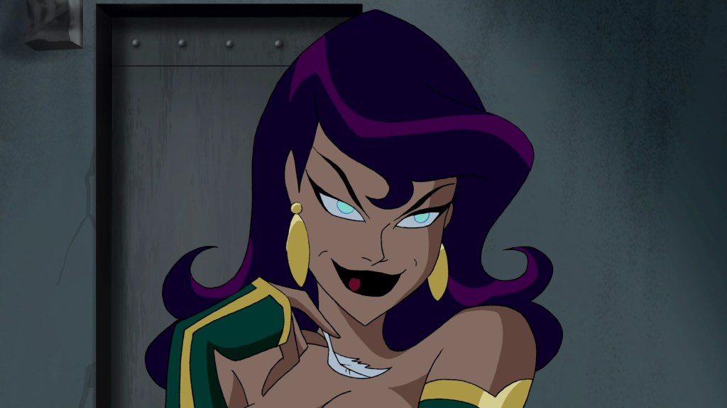 Speaking of Zatanna, she got a real kick in the pants from Paul Dini compared to her BTAS debut, with improvements to both her performance patter and magical ability, as she puts her hand inside her hat and plucks a man out of the audience, now shrunken, before restoring him to normal size. Wild. Previously it felt like she was a real world magician – that everything was smoke and mirrors – whereas now we have magic firmly confirmed as canon to the DCAU, she can go allllll in. We’re talking teleportation and flinging furniture, baby. Huge fan of the madcap moment of her chucking an entire fucking grand piano at Circe.