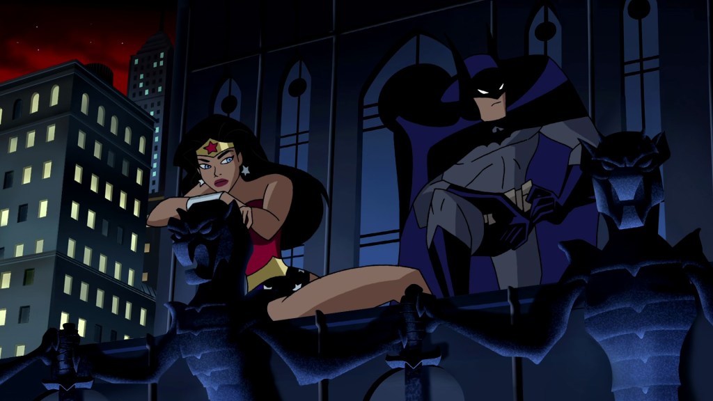 I do understand why this is considered a bad episode, and I’m certainly not going to argue it’s one of the best, but there is something oddly compelling about how far Dini was willing to go with the litany of cameos, and the absurdity of Wonder Woman spending most of the episode as a pig, topped only by the resolution of Bruce singing a touching rendition of ‘Am I Blue?’ Plus all the WonderBat stuff is compelling in my opinion. I’m definitely docking points for the nonsensical ending and that ridiculous face Batman makes though.