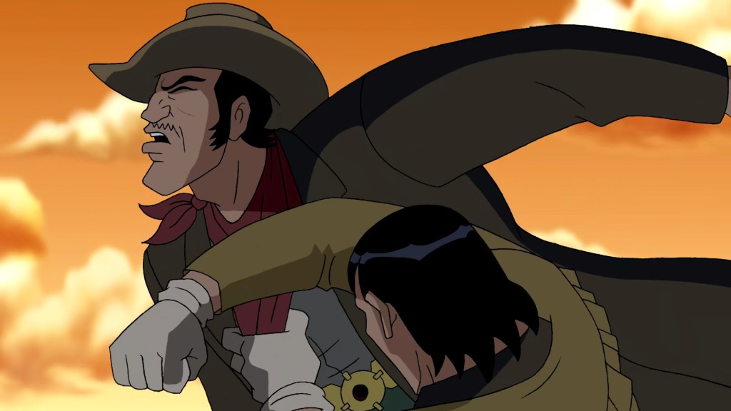 Something I have really enjoyed about the two Justice League shows is the creative team’s desire to pay tribute to different eras of DC history. ‘Legends‘ honoured the Justice Society of America. ‘The Savage Time‘ shone a spotlight on the World War II characters. And now this episode does the same with the Wild West. It’s that sense of legacy and a very lived-in world that makes DC so enduringly popular in my opinion. I’m not a huge Westerns guy, but I got a kick out of the aesthetic for the sake of 15 minutes. Solid music from Kris Carter throughout too, especially the rearranged version of the main theme song in a more Western style.