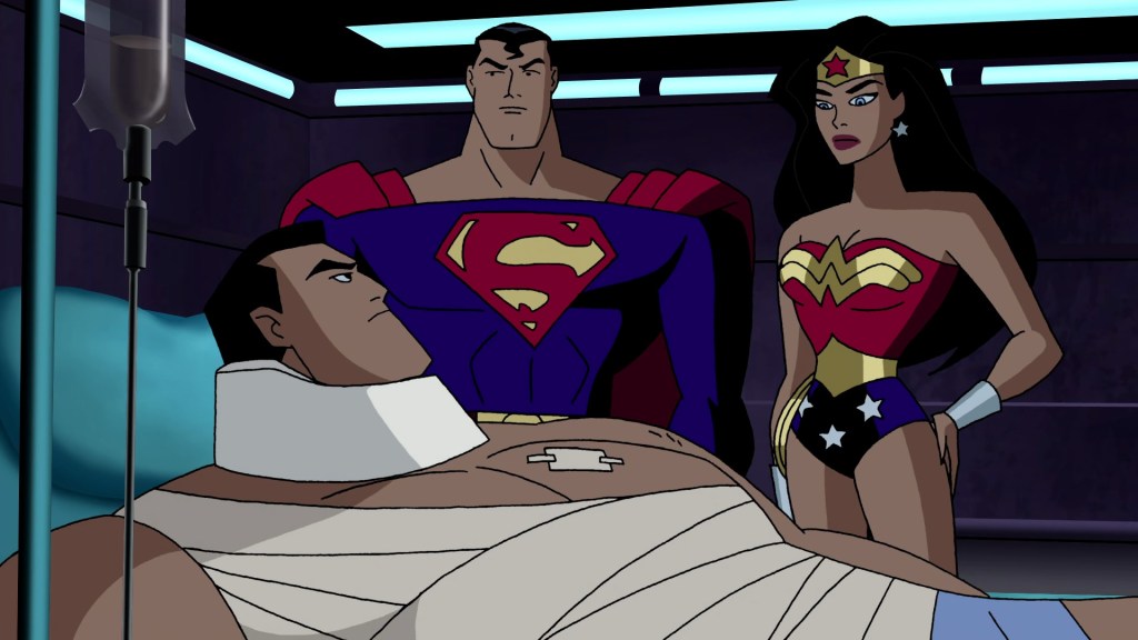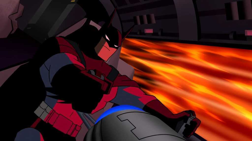 Batman’s dramatic chase-down of the missile underlines the problem with the episode in general. On paper it seems really exciting, as Bruce decides only he can get there fast enough, demanding other heroes get the hell out of his way as he tears off, almost dying on re-entry due to the speed he’s hurtling, his missiles failing so having to improvise, narrowly escaping before he went down with the ship. But. None of it felt real to me. The whole scenario came together so fast and was dealt with almost as quickly, with Batman never feeling in any real danger whatsoever. It was like trying to speed-run the ending of ‘Starcrossed‘ where he tried to suicide bomb the Thanagarian base only for Superman to save him at the last second, but by comparison this felt entirely unearned. And then it’s just right back to the mindless Superman/Doomsday brawl.
