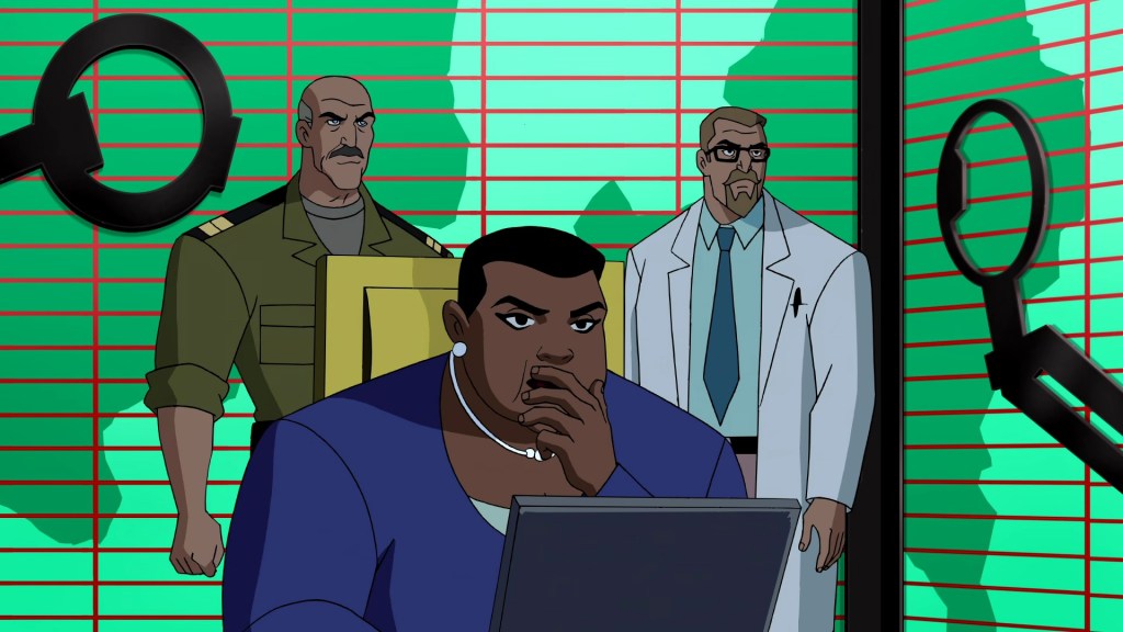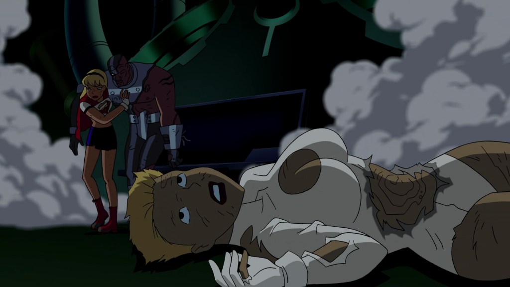 Anyway, said new kids do get their turn in the spotlight, with basically every background character that hasn’t even spoken getting to do something and it’s all exciting and well animated. In a perfect world we’d care about more of them as people, but that would require a much larger episode count or a firmer commitment to rotating the cast. It was cute to have the ‘civilian’ support staff get in on the action too. It all builds to Captain Atom’s dramatic recovery, turning his back on Cadmus after all, which makes sense given what transpired last episode… but again, we don’t really care about Captain Atom as much as we do say… Green Arrow, Black Canary, The Question, Huntress, The Atom, Booster Gold and even Vixen. Guess he does outclass them all from a powers standpoint, and several of them were planet-side. Whatever, man! I’m just saying for as cool as the SuperBrawl is, it does underline the fact most of these characters are window dressing for the Big 7.
