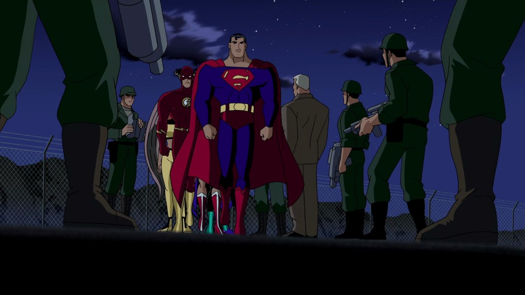 One of the strengths of Justice League was how often the team disagreed with each other, with several of the characters able to assume the role of ‘bad cop’ when required. Most often this was Green Lantern, and he reprises that function here, stating that their mission to protect the world is more important than how popular they are. Wonder Woman is presented as the diplomatic middle ground, believing they should be able to protect AND serve, as it were. That leaves Superman in the interesting position of worrying more about how the world feels about him, a consequence of ‘Legacy‘, given a large part of forming The League was to help rehabilitate his image and win back the trust of the public. They haven’t really played on this aspect at all since the earliest episodes, which is a shame as it would actually be an interesting motivation to send him down some unusual moral pathways.