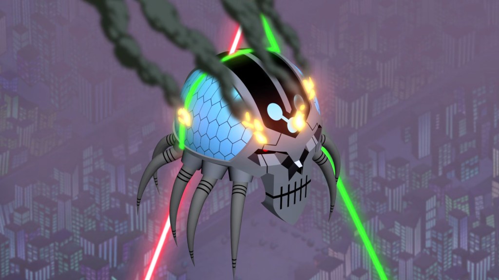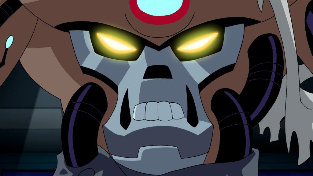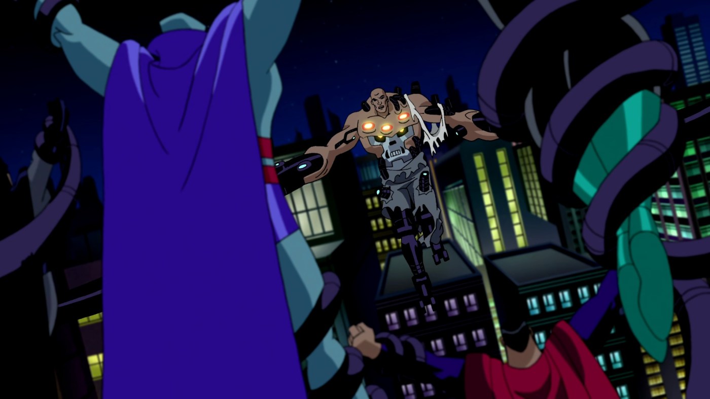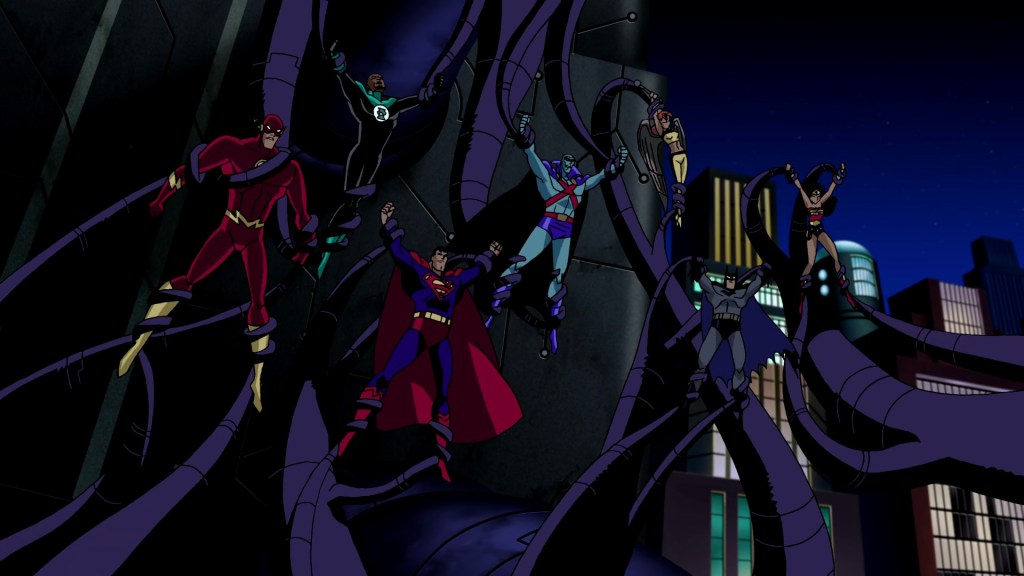 The giant tentacle swarm Brainiac opens its assault with is among the most devastating attacks unleashed by a villain in the DCAU, with barely any of The League even damaging one of a seemingly infinite number of the damn things. They shatter one of John’s bubble shields! It’s thus a little frustrating when the next move is creating a giant spaceship that looks like Brainiac’s head… which is somehow less of a threat than simply sticking with the tentacles.
