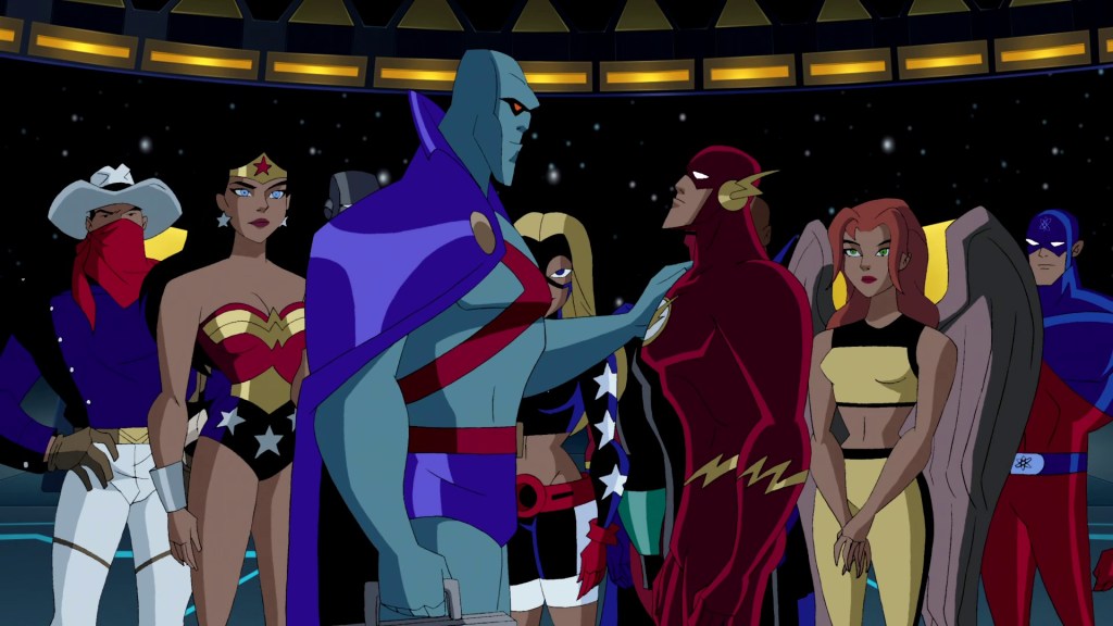 Making Ollie the third leg of this tripod is a nice idea given he’s such a man of the people, encouraging J’onn to eat lunch with his teammates more often. GA is also here because of his strong background with social issues, and this episode is also an environmentalism PSA, with Diana arguing against regionally ambiguous world leaders about whether or not global warming even exists. How far we’ve come in the last twenty years! Ollie’s also a lot of fun in general, bringing levity to proceedings with his trick arrows and light-hearted fight banter. He was never a character I thought anything of when I was younger, disliking his campy Robin Hood knockoff vibe, but growing up is realising he’s actually great and it’s deeply funny to me the most prominent/mainstream representation of the character is instead a broody Batman knockoff.