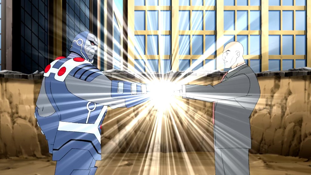 I’m afraid Michael Ironside just didn’t seem to be about it in 2006. He’s got a relatively solid entrance monologue talking about all the things that’ll happen to the world before and after he kills Superman… but he just sounds bored. The fight banter is decent enough, but I will say that the overall dialogue for Darkseid is a smidge more… obvious? Generic? I dunno. This just definitely isn’t the STAS-era Darkseid writing. He at least closes strong with his whispered wonder towards the Anti-Life Equation.